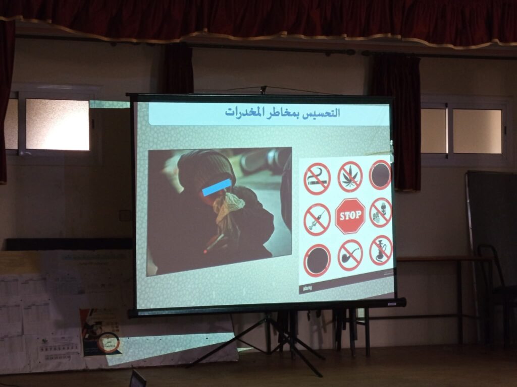 وقد تناول المؤطرون خلال العرض شرح مفهوم المخدرات وأنواعها، مع التوقف عند مخاطرها الصحية والاجتماعية والقانونية، مبرزين الأساليب التي يعتمدها مروجو هذه المواد لاستهداف الفئة الشبابية، وسبل الوقاية منها.