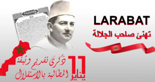أكمل القراءة »السيد “مصطفى بنحمدان” رئيس تعاونية شاحنات نقل الرمال ومواد البناء يهنئ جلالة الملك بمناسبة الذكرى 82 لتقديم وثيقة المطالبة بالاستقلال